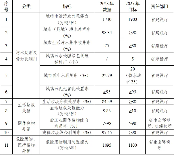 生活垃圾處理。到2025年,生活垃圾處理能力達到10萬噸/日以上,生活垃圾分類處理率達到88%以上,回收利用率達到70%以上。