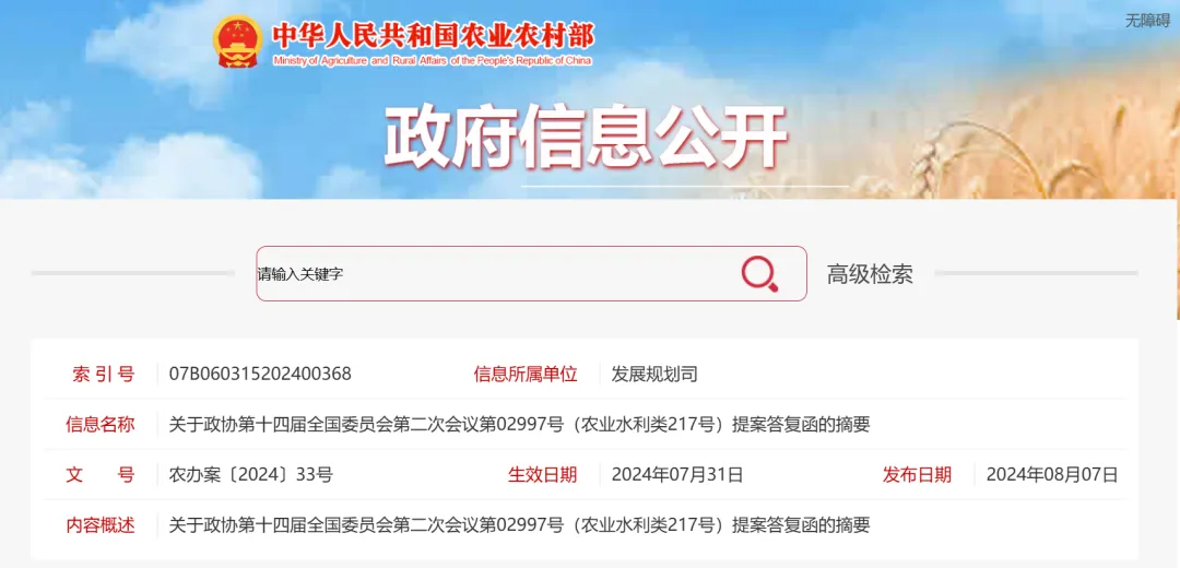 關(guān)于政協(xié)第十四屆全國(guó)委員會(huì)第二次會(huì)議第02997號(hào)(農(nóng)業(yè)水利類217號(hào))提案答復(fù)函的摘要