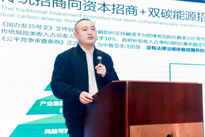 中能?chē)?guó)新環(huán)??萍几笨偨?jīng)理、零碳事業(yè)部總經(jīng)理中能?chē)?guó)新環(huán)保科技副總經(jīng)理、零碳事業(yè)部總經(jīng)理劉帥作題為《零碳示范園區(qū)投規(guī)建運(yùn)一體化·共筑綠色未來(lái)》的主旨報(bào)告,報(bào)告簡(jiǎn)述了零碳產(chǎn)業(yè)的政策背景及產(chǎn)業(yè)現(xiàn)狀,并通過(guò)招商模式轉(zhuǎn)型、產(chǎn)業(yè)鏈協(xié)同發(fā)展、多元運(yùn)營(yíng)等發(fā)面,詳細(xì)介紹了零碳產(chǎn)業(yè)園區(qū)的運(yùn)營(yíng)方案。最后,指出打造零碳示范園有賦能地方產(chǎn)業(yè)綠色高質(zhì)量發(fā)展,助力地方GDP長(zhǎng)期穩(wěn)定增加的生態(tài)、經(jīng)濟(jì)意義。