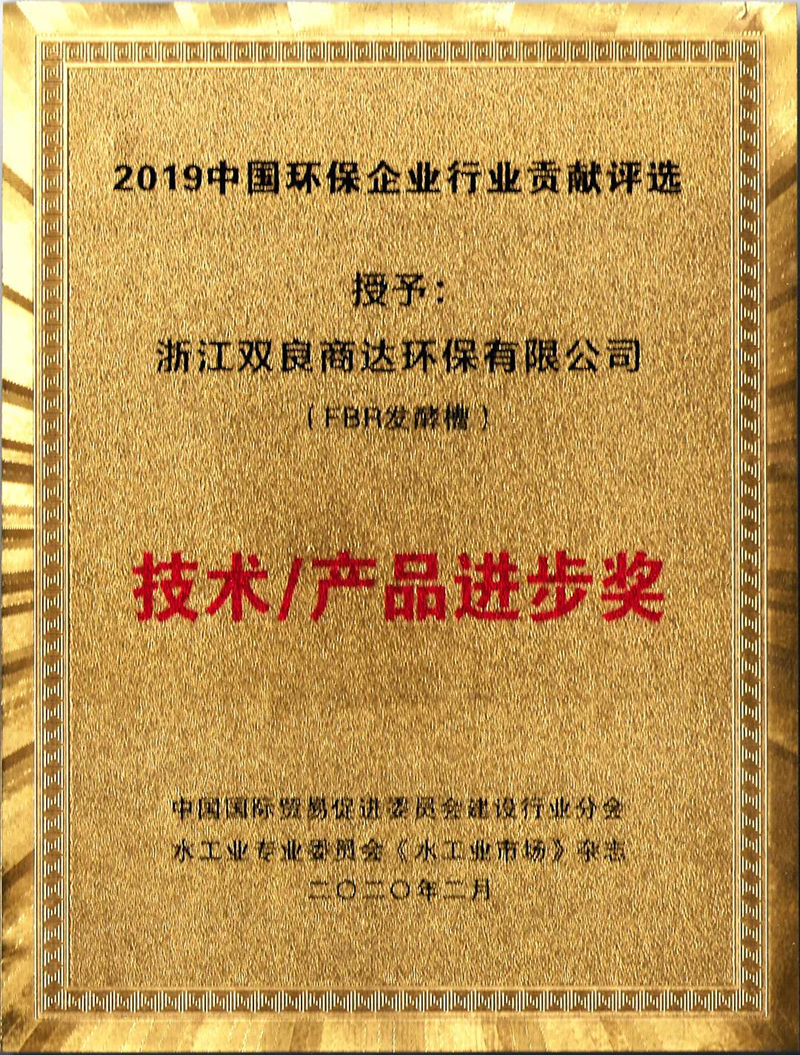 2020年1月,由《水工業(yè)市場》雜志發(fā)起的“2019中國環(huán)保企業(yè)行業(yè)貢獻(xiàn)評選”活動落下帷幕。雙良商達(dá)FBR發(fā)酵槽產(chǎn)品榮獲“2019中國環(huán)保企業(yè)行業(yè)貢獻(xiàn)評選——技術(shù)/產(chǎn)品進(jìn)步獎(jiǎng)”,這是FBR發(fā)酵槽技術(shù)產(chǎn)品連續(xù)5年獲得行業(yè)認(rèn)可。