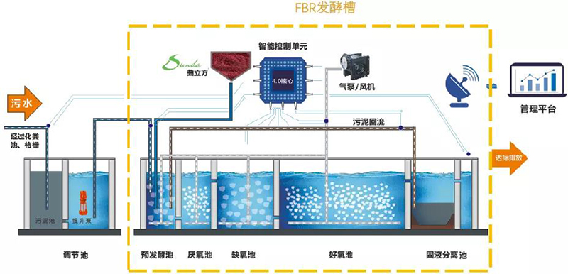 商達第四代FBR發(fā)酵槽就是在闡明環(huán)境功能微生物代謝特征基礎(chǔ)上,重新認識微生物發(fā)酵工程過程,精細調(diào)控功能微生物代謝活性,提高出水達標率95%以上,滿足政府以及PPP項目的需求。