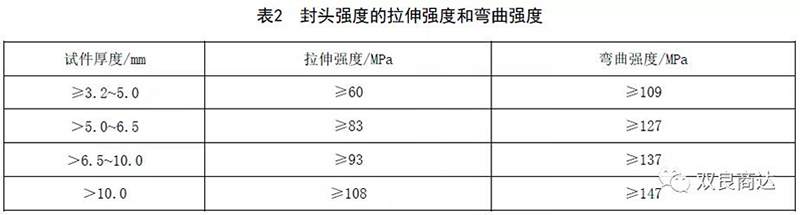 6.2.2.1 封頭的拉伸強(qiáng)度和彎曲強(qiáng)度應(yīng)符合表2的要求。