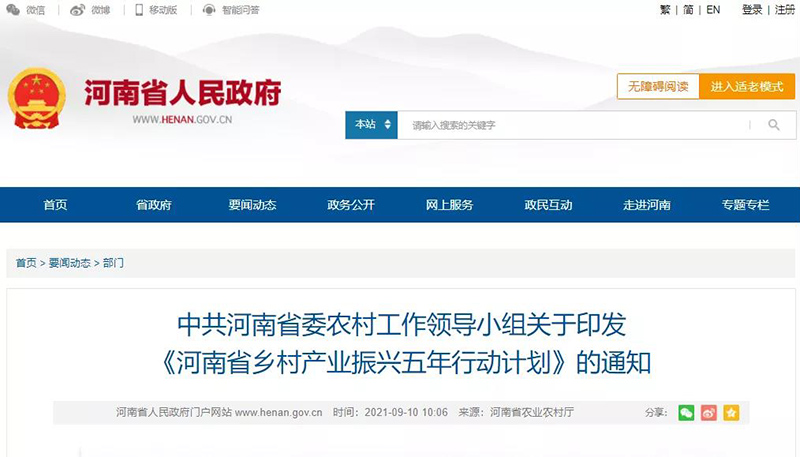 河南省鄉(xiāng)村產(chǎn)業(yè)振興五年行動(dòng)計(jì)劃公布