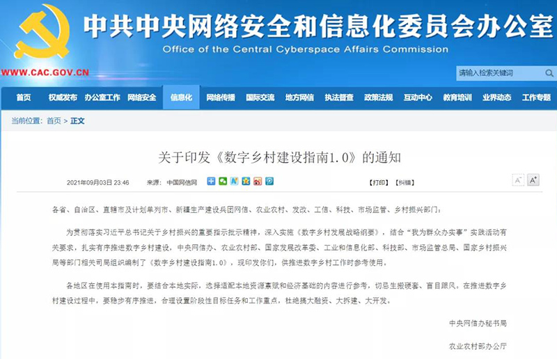 關(guān)于印發(fā)《數(shù)字鄉(xiāng)村建設(shè)指南1.0》的通知