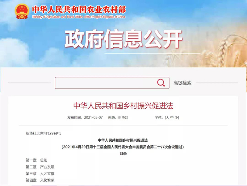 2021年中華人民共和國鄉(xiāng)村振興促進(jìn)法