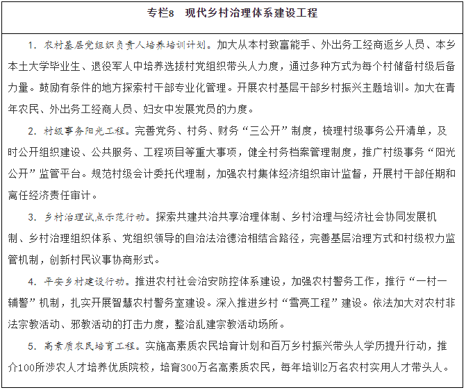 ——鄉(xiāng)村治理能力進(jìn)一步增強(qiáng)。黨組織領(lǐng)導(dǎo)的農(nóng)村基層組織建設(shè)明顯加強(qiáng),鄉(xiāng)村治理體系更加健全,鄉(xiāng)風(fēng)文明程度有較大提升,農(nóng)民精神文化生活不斷豐富,農(nóng)村發(fā)展安全保障更加有力。
