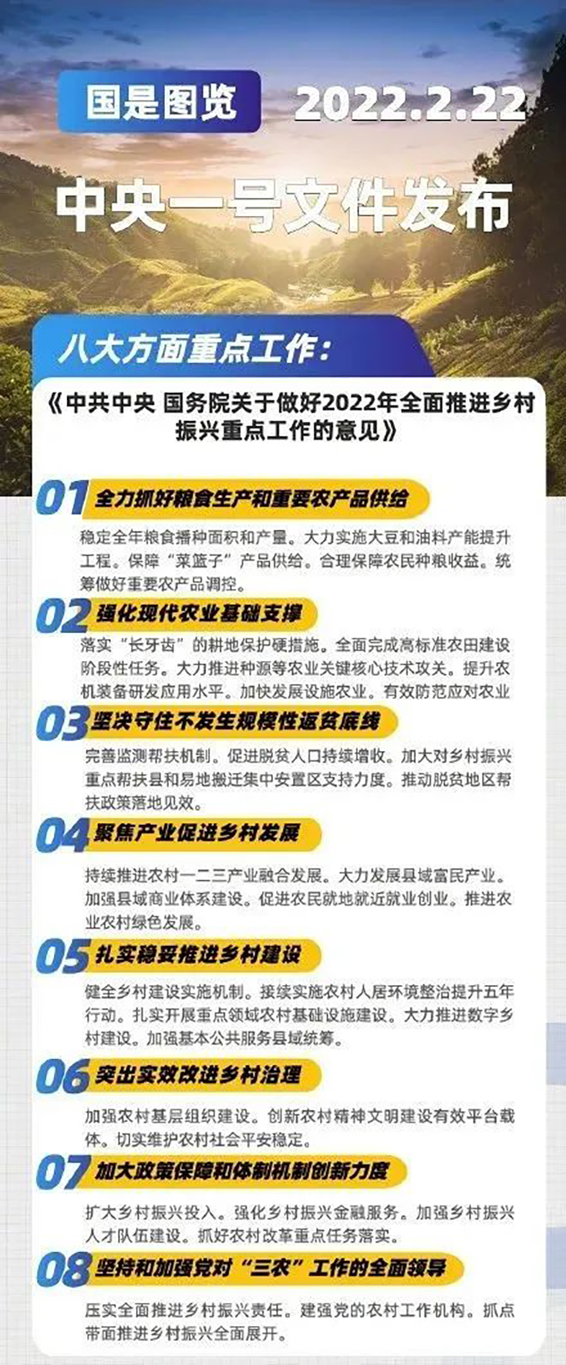 發(fā)布會上,中央農(nóng)村工作領(lǐng)導(dǎo)小組辦公室主任、農(nóng)業(yè)農(nóng)村部部長唐仁健,中央農(nóng)村工作領(lǐng)導(dǎo)小組辦公室副主任、國家鄉(xiāng)村振興局局長劉煥鑫,中央農(nóng)村工作領(lǐng)導(dǎo)小組辦公室專職副主任、農(nóng)業(yè)農(nóng)村部黨組成員吳宏耀分別回答了記者關(guān)于國家糧食安全、中央一號文件的各方面提問。唐仁健特別強調(diào):“全面實施鄉(xiāng)村振興戰(zhàn)略一年多,從實踐工作中,我覺得最最重要的是兩個中心詞或中心句。一是在工作理念上,鄉(xiāng)村振興是為農(nóng)民而興,鄉(xiāng)村建設(shè)是為農(nóng)民而建,這是理念。二是在工作方法上,也是習(xí)近平總書記批示要求的,數(shù)量服從質(zhì)量,進度服從實效,求好不求快,這是方法?!?/span>此前,2022年2月21日,新華社受權(quán)發(fā)布了21世紀以來第19個指導(dǎo)“三農(nóng)”工作的中央一號文件。這份文件題為《中共中央 國務(wù)院關(guān)于全面推進鄉(xiāng)村振興加快農(nóng)業(yè)農(nóng)村現(xiàn)代化的意見》,全文共5個部分,包括:總體要求、實現(xiàn)鞏固拓展脫貧攻堅成果同鄉(xiāng)村振興有效銜接、加快推進農(nóng)業(yè)現(xiàn)代化、大力實施鄉(xiāng)村建設(shè)行動、加強黨對“三農(nóng)”工作的全面領(lǐng)導(dǎo)。值得一提的是,今年的中央一號文件強調(diào),各級黨委農(nóng)村工作領(lǐng)導(dǎo)小組一體承擔(dān)鞏固拓展脫貧攻堅成果、全面推進鄉(xiāng)村振興議事協(xié)調(diào)的職責(zé)。而在中央層面,“三位一體”抓鄉(xiāng)村振興工作的中央農(nóng)辦、農(nóng)業(yè)農(nóng)村部、鄉(xiāng)村振興局又有所分工——中央農(nóng)辦負責(zé)牽頭實施鄉(xiāng)村振興戰(zhàn)略;農(nóng)業(yè)農(nóng)村部負責(zé)統(tǒng)籌實施,統(tǒng)籌的職責(zé)是由《鄉(xiāng)村振興促進法》賦予;國家鄉(xiāng)村振興局負責(zé)具體實施。 “職能雖然有不同,但不能也不是‘一刀切’,大家擰成一股繩,從不同的角度、不同的層面來有條不紊地推進鄉(xiāng)村振興工作?!碧迫式】偨Y(jié)稱。關(guān)于今年的中央一號文件,唐仁健在發(fā)布會上表示,“這是新世紀以來,中央連續(xù)出臺的第19個指導(dǎo)‘三農(nóng)’工作的一號文件,充分體現(xiàn)了黨中央、國務(wù)院馳而不息重農(nóng)強農(nóng)的堅強堅定決心,為廣大農(nóng)民群眾送來了政策春風(fēng)和民生禮包?!?/span>唐仁健指出,今年中央一號文件錨定鄉(xiāng)村振興的總體目標,堅持穩(wěn)字當(dāng)頭、穩(wěn)中求進,對2022年鄉(xiāng)村振興重點工作作出全面部署。文件包括8個部分35條,主要內(nèi)容可以概括為“兩條底線、三項重點、一個加強”: “兩條底線”就是牢牢守住保障國家糧食安全和不發(fā)生規(guī)模性返貧兩條底線。強調(diào)全力抓好糧食生產(chǎn)和重要農(nóng)產(chǎn)品供給,嚴守18億畝耕地紅線,確保糧食播種面積穩(wěn)定、產(chǎn)量保持在1.3萬億斤以上;完善落實監(jiān)測幫扶機制,推動脫貧地區(qū)更多依靠發(fā)展來鞏固拓展脫貧攻堅成果,確保不發(fā)生規(guī)模性返貧。“三項重點”就是扎實有序推進鄉(xiāng)村發(fā)展、鄉(xiāng)村建設(shè)、鄉(xiāng)村治理。鄉(xiāng)村發(fā)展方面,重點推進農(nóng)村一二三產(chǎn)業(yè)融合發(fā)展,促進農(nóng)民就地就近就業(yè)增收。鄉(xiāng)村建設(shè)方面,重點加強普惠性、基礎(chǔ)性、兜底性民生建設(shè),健全實施機制。鄉(xiāng)村治理方面,重點加強農(nóng)村基層組織建設(shè),創(chuàng)新農(nóng)村精神文明建設(shè)有效平臺載體,維護農(nóng)村社會平安穩(wěn)定。 “一個加強”就是堅持和加強黨對“三農(nóng)”工作的全面領(lǐng)導(dǎo)。強調(diào)壓實全面推進鄉(xiāng)村振興責(zé)任,加大政策保障和體制機制創(chuàng)新力度。唐仁健總結(jié)稱,“今年的文件突出年度性任務(wù)、針對性舉措、實效性導(dǎo)向,既具體又務(wù)實,可以說是明確了全面推進鄉(xiāng)村振興的年度工作要點和任務(wù)清單?!?/span>鄉(xiāng)村振興不同于脫貧攻堅,是持久戰(zhàn),不是攻堅戰(zhàn)2020年,隨著貴州紫云等九個貧困縣脫貧出列,我國832個貧困縣全部實現(xiàn)摘帽“清零”,脫貧攻堅戰(zhàn)取得全面勝利。在2020年底的中央農(nóng)村工作會議上,習(xí)近平總書記指出:“脫貧攻堅取得勝利后,要全面推進鄉(xiāng)村振興,這是‘三農(nóng)’工作重心的歷史性轉(zhuǎn)移?!?/span>如今,全面推進鄉(xiāng)村振興也要借鑒脫貧攻堅的經(jīng)驗和做法。唐仁健在回答記者提問時表示,“抓‘三農(nóng)’工作其實就是抓全面推進鄉(xiāng)村振興,今年中央的一號文件就是聚焦全面推進鄉(xiāng)村振興重點工作。‘三農(nóng)’工作和鄉(xiāng)村振興在內(nèi)涵、外延上,在新時代、新階段基本是差不多的,所以,我們在實際工作中就更不要把它搞成‘兩張皮’。當(dāng)前,關(guān)鍵是要真刀真槍干起來,見聲勢、見行動?!?/span>發(fā)布會上,唐仁健從壓實責(zé)任、健全機制、轉(zhuǎn)變作風(fēng)、建強機構(gòu)四個方面談了今年將如何全面推進鄉(xiāng)村振興各項工作。其中,他指出,“鄉(xiāng)村振興不同于脫貧攻堅,是持久戰(zhàn),不是攻堅戰(zhàn),是全域、全員、全面的振興,我們不能