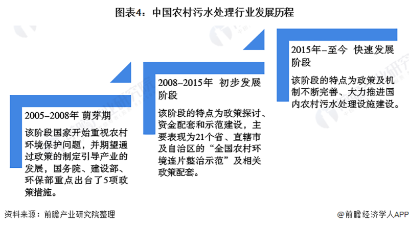 我國(guó)農(nóng)村污水處理行業(yè)主要經(jīng)歷三個(gè)發(fā)展階段: