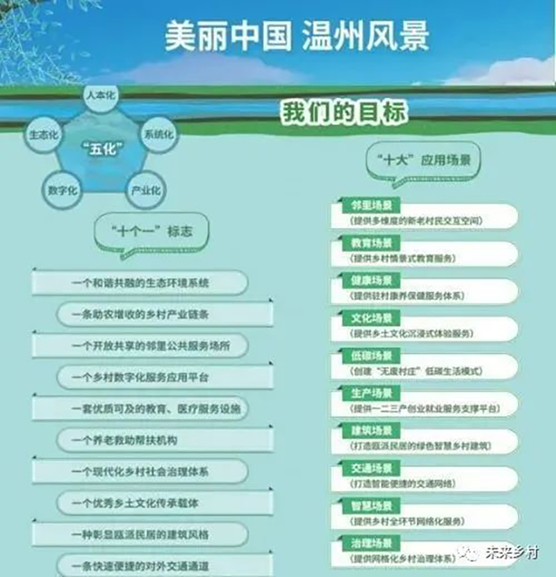 以“五化”為方向,"十個一”為標志,聚焦“十大"應用場景,2021年先行啟動25個未來鄉(xiāng)村試點,計劃到2025年全市創(chuàng)成100個以上未來鄉(xiāng)村,使未來鄉(xiāng)村真正成為美麗中國的溫州風景。