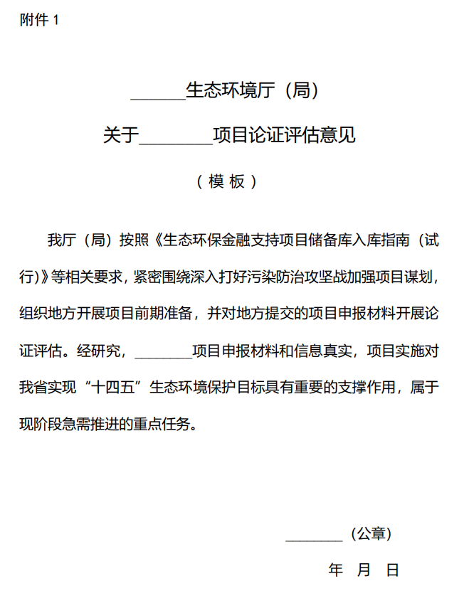(三)省級生態(tài)環(huán)境部門項目論證評估意見(模板見附件1)。