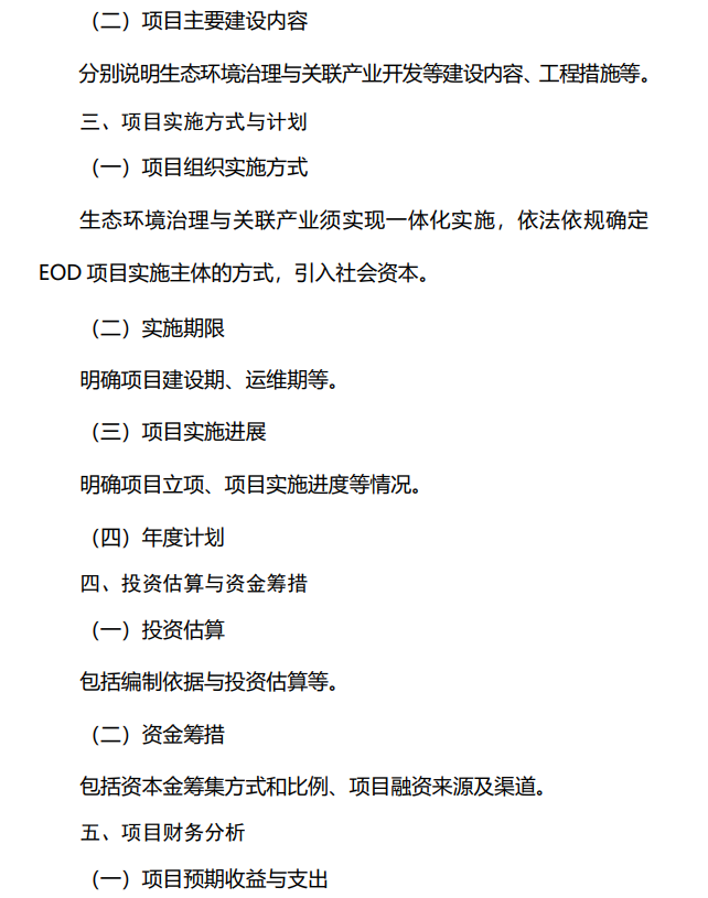 2.生態(tài)環(huán)境導(dǎo)向的開發(fā)(EOD)模式項目實施方案編制大綱
