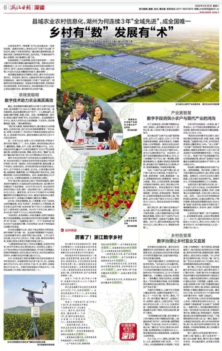 安吉白茶園里的無(wú)線(xiàn)農(nóng)業(yè)氣象綜合監(jiān)測(cè)站設(shè)備 安吉縣委宣傳部供圖 為此,“白茶產(chǎn)業(yè)大腦”歸集土地、農(nóng)戶(hù)等14類(lèi)452萬(wàn)條信息,打造茶產(chǎn)業(yè)一張圖、肥藥兩制一本賬、數(shù)據(jù)服務(wù)一朵云、監(jiān)管提質(zhì)浙農(nóng)碼、智慧茶園一體化五大場(chǎng)景。例如,以往的采茶季,茶農(nóng)凌晨3時(shí)要到市場(chǎng)排隊(duì)、取號(hào),現(xiàn)在通過(guò)手機(jī)就能預(yù)約取號(hào)。茶農(nóng)還能憑電子茶園證,按每畝茶地15公斤干茶標(biāo)準(zhǔn),在線(xiàn)領(lǐng)取唯一浙農(nóng)碼、定制包裝等。“物流預(yù)約、法律咨詢(xún)等服務(wù)也會(huì)陸續(xù)上線(xiàn)?!标愭谜f(shuō),去年白茶產(chǎn)值由27.59億元增加至31.13億元,帶動(dòng)全縣農(nóng)民平均增收8600元。 除白茶以外,眼下湖州還有漁業(yè)產(chǎn)業(yè)大腦、湖羊產(chǎn)業(yè)大腦等在建。數(shù)字化手段和思維,正助力破解傳統(tǒng)辦法不能解決的難題,消弭小農(nóng)戶(hù)與現(xiàn)代產(chǎn)業(yè)之間的“數(shù)字鴻溝”,也推動(dòng)產(chǎn)業(yè)提質(zhì)、農(nóng)民富裕。2021年,湖州農(nóng)林牧漁業(yè)總產(chǎn)值252.4億元,同比增長(zhǎng)4.1%,增速居全省第二。 分析評(píng)價(jià)標(biāo)準(zhǔn)能進(jìn)一步發(fā)現(xiàn),除了資金投入、生產(chǎn)信息化兩項(xiàng)重要指標(biāo),農(nóng)業(yè)經(jīng)營(yíng)、服務(wù)信息化指標(biāo)的分量也頗重,分別占比25%、10%。 “推進(jìn)農(nóng)業(yè)農(nóng)村數(shù)字化過(guò)程中,我們很注重協(xié)同推進(jìn)電商、冷鏈、物流、倉(cāng)儲(chǔ)等發(fā)展。”吳建榮介紹,目前,全市村級(jí)電商服務(wù)點(diǎn)覆蓋率達(dá)100%,“吳上興鮮”“長(zhǎng)興鮮”“南潯知味”等本地電商平臺(tái)迅速崛起,德清還連續(xù)兩年入選了浙江省縣域農(nóng)產(chǎn)品網(wǎng)絡(luò)零售額排名前二十的縣(市、區(qū))。得益于農(nóng)產(chǎn)品全鏈條數(shù)字化應(yīng)用場(chǎng)景建設(shè)等,湖州在“縣域農(nóng)產(chǎn)品質(zhì)量安全追溯信息化發(fā)展水平”評(píng)價(jià)上,得分高達(dá)97%。