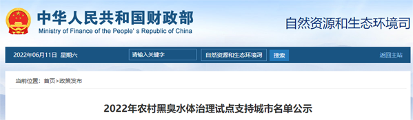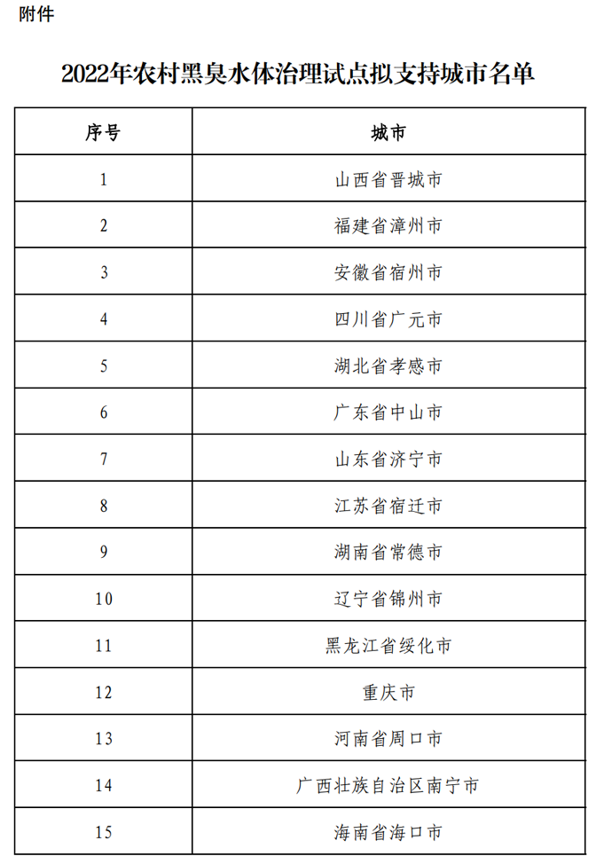 近日,財政部印發(fā)《2022年農(nóng)村黑臭水體治理試點(diǎn)支持城市名單公示》,擬將山西省晉城市、福建省漳州市等15個城市確定為2022年支持的農(nóng)村黑臭水體治理試點(diǎn)城市,詳情如下:2022年農(nóng)村黑臭水體治理試點(diǎn)支持城市名單公示按照《財政部辦公廳 生態(tài)環(huán)境部辦公廳關(guān)于開展2022年農(nóng)村黑臭水體治理試點(diǎn)工作的通知》(財辦資環(huán)〔2022〕5號)要求,財政部會同生態(tài)環(huán)境部組織專家對各地農(nóng)村黑臭水體治理申報城市實(shí)施方案進(jìn)行了競爭性評審。根據(jù)競爭性評審結(jié)果,擬將15個城市確定為2022年支持的農(nóng)村黑臭水體治理試點(diǎn)城市(詳見附件)。現(xiàn)將結(jié)果予以公示,公示期2022年6月10日至2022年6月16日。如有意見,請以書面(實(shí)名)形式反饋財政部自然資源和生態(tài)環(huán)境司、生態(tài)環(huán)境部土壤生態(tài)環(huán)境司。 附件:2022年農(nóng)村黑臭水體治理試點(diǎn)擬支持城市名單 聯(lián)系電話:010-61965527 010-65645718 財政部自然資源和生態(tài)環(huán)境司生態(tài)環(huán)境部土壤生態(tài)環(huán)境司 2022年6月10日