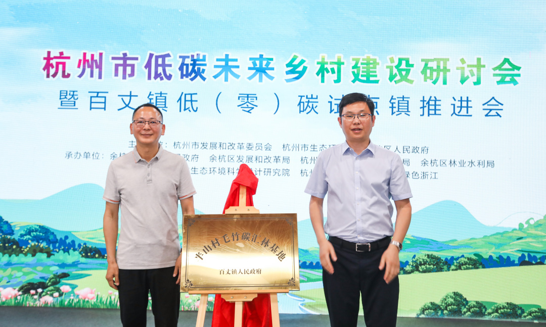 本次活動由杭州市發(fā)展和改革委員會、杭州市生態(tài)環(huán)境局、余杭區(qū)人民政府主辦,百丈鎮(zhèn)人民政府、余杭區(qū)發(fā)展和改革局、杭州市生態(tài)環(huán)境局余杭分局、余杭區(qū)林業(yè)水利局等共同承辦。來自省市區(qū)低碳領域的專家、高校學者參與了現(xiàn)場討論,并針對低(零)碳試點鄉(xiāng)鎮(zhèn)具體工作進行了研討。浙江農(nóng)林大學農(nóng)村環(huán)境研究所所長鄭展望教授受邀參會并為百丈鎮(zhèn)半山村竹林碳匯基地揭牌。