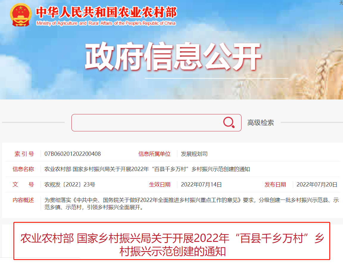 全面推進鄉(xiāng)村振興是黨中央、國務(wù)院作出的重大部署,開展“百縣千鄉(xiāng)萬村”鄉(xiāng)村振興示范創(chuàng)建是推進鄉(xiāng)村振興的重要舉措。為貫徹落實《中共中央、國務(wù)院關(guān)于做好2022年全面推進鄉(xiāng)村振興重點工作的意見》要求,分級創(chuàng)建一批鄉(xiāng)村振興示范縣、示范鄉(xiāng)鎮(zhèn)、示范村,引領(lǐng)鄉(xiāng)村振興全面展開,現(xiàn)就開展2022年“百縣千鄉(xiāng)萬村”鄉(xiāng)村振興示范創(chuàng)建通知如下。