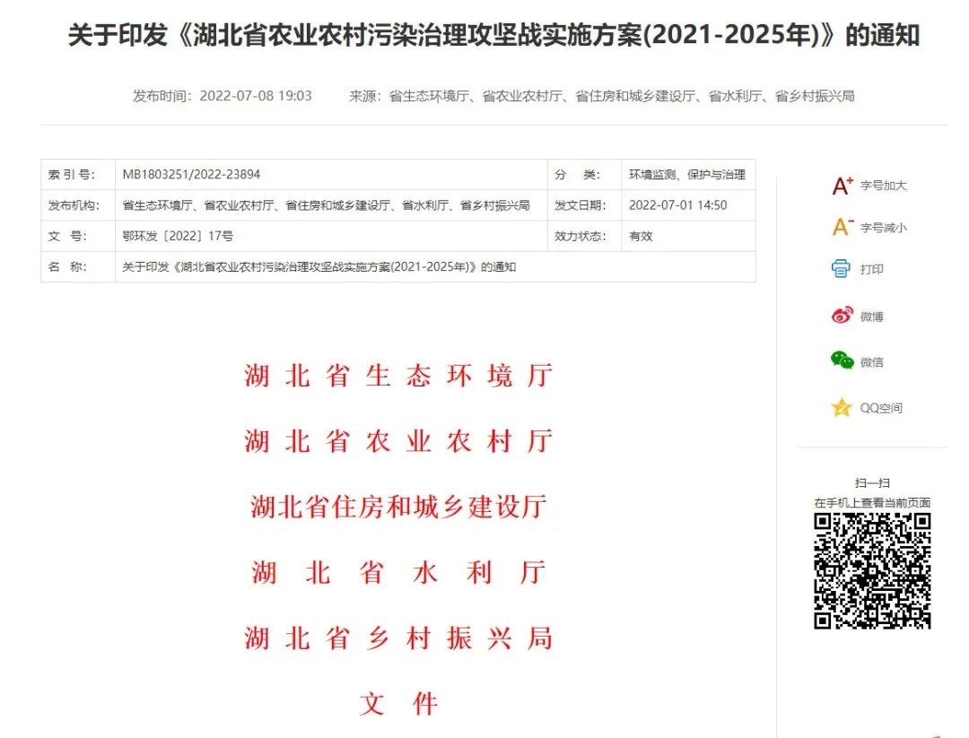 為全面貫徹落實(shí)黨中央關(guān)于深入打好污染防治攻堅(jiān)戰(zhàn)的總體部署和省委、省政府有關(guān)工作意見(jiàn),湖北省生態(tài)環(huán)境廳、省農(nóng)業(yè)農(nóng)村廳、省住房和城鄉(xiāng)建設(shè)廳、省水利廳、省鄉(xiāng)村振興局組織制定了《湖北省農(nóng)業(yè)農(nóng)村污染治理攻堅(jiān)戰(zhàn)實(shí)施方案(2021-2025年)》。