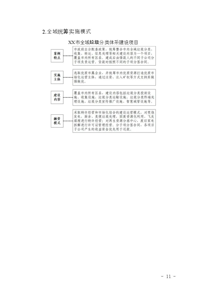 (四)完善機制,全面管理??h域垃圾污水處理設(shè)施建設(shè)項目的融資主體應為已建立現(xiàn)代企業(yè)制度、經(jīng)營狀況和信用狀況良好,且愿意履行社會責任的企業(yè)。鼓勵以縣(市、區(qū))為單位,指定或組建專業(yè)公司統(tǒng)一負責項目“投、融、建、管、運”,縣級及以上人民政府按規(guī)定授予長期特許經(jīng)營權(quán)。制定項目實施方案時,各地可梳理存量經(jīng)營性資產(chǎn),統(tǒng)籌各方面資源,助力項目實施主體提升融資綜合能力。