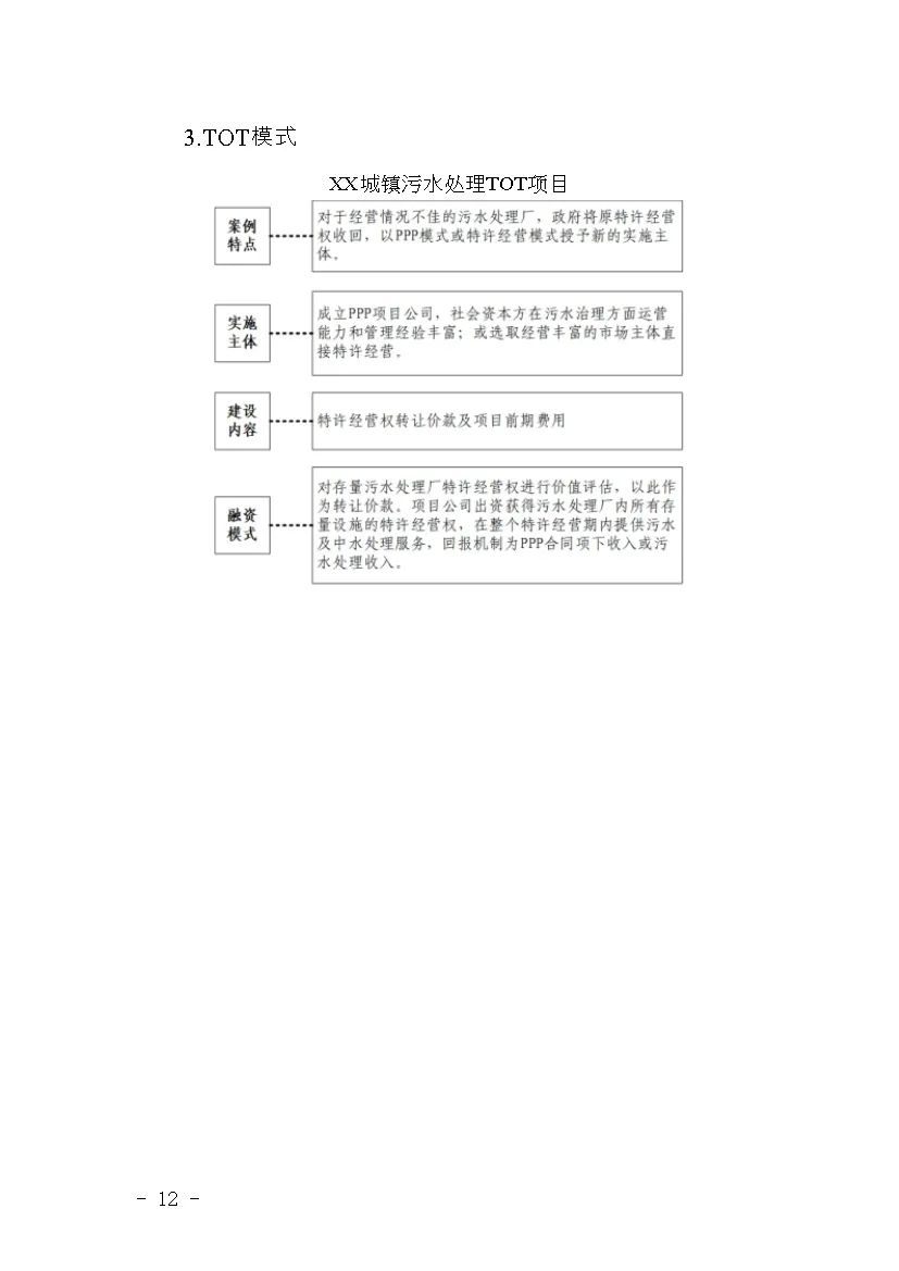 可采用政府將低效運營的存量垃圾污水處理設(shè)施的特許經(jīng)營權(quán)先行收回,再通過實施模式(TOT模式)授予新實施主體特許經(jīng)營權(quán),既可避免資產(chǎn)轉(zhuǎn)讓產(chǎn)生高額稅費,又可不受并購類貸款相關(guān)限制。