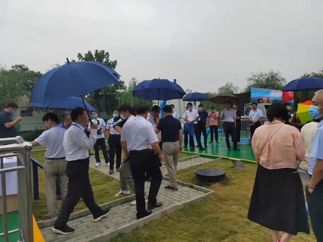 會(huì)議前夕,與會(huì)人員現(xiàn)場(chǎng)觀摩了金鄉(xiāng)縣羊山鎮(zhèn)徐樓村農(nóng)村生活污水和黑臭水體一體化治理項(xiàng)目。項(xiàng)目采用“污水處理站+氧化塘”的處理模式,同時(shí)打造了“以塘養(yǎng)站”的運(yùn)維模式,將氧化塘用于灌溉蒜黃基地大棚,產(chǎn)生的集體經(jīng)濟(jì)效益用于補(bǔ)貼污水處理站的運(yùn)行維護(hù)費(fèi)用。