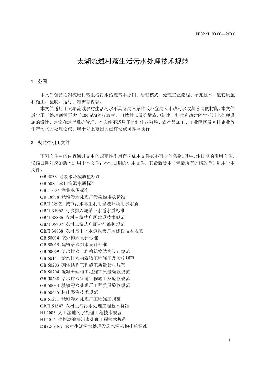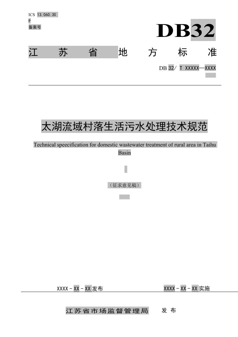 江蘇太湖流域村落生活污水處理技術(shù)規(guī)范(征求意見(jiàn)稿)