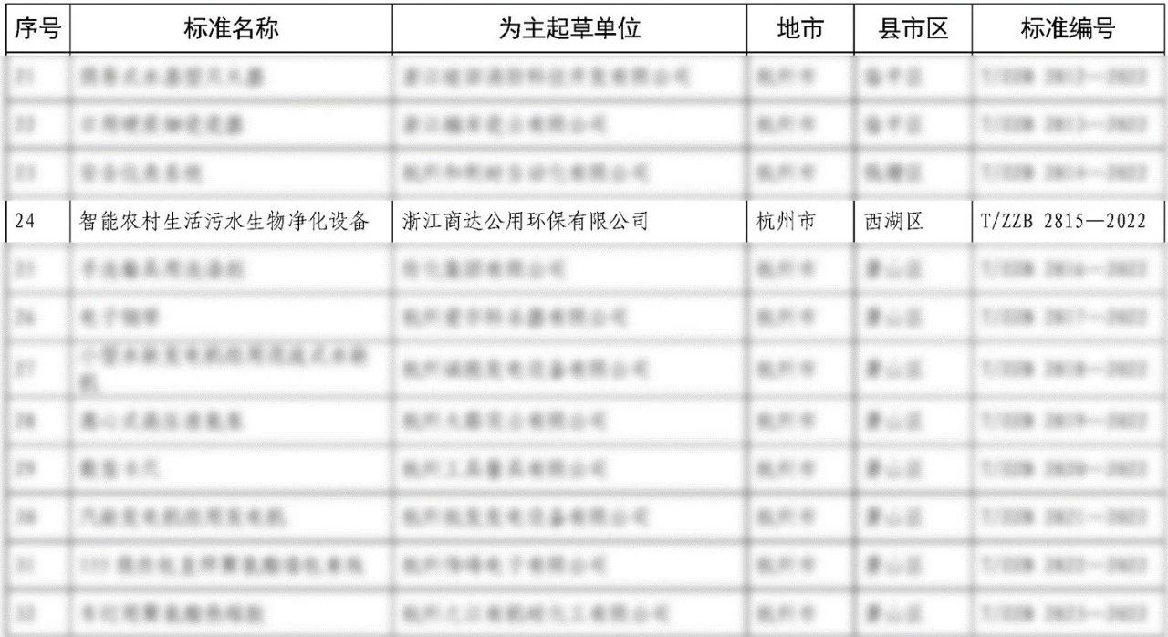 12月8日,浙江省品牌建設(shè)聯(lián)合會根據(jù)《關(guān)于加快“浙江制造”標(biāo)準(zhǔn)制定和實(shí)施工作的指導(dǎo)意見》,226項(xiàng)標(biāo)準(zhǔn)經(jīng)由聯(lián)合會批準(zhǔn)成為“品字標(biāo)”團(tuán)體標(biāo)準(zhǔn)。商達(dá)公用起草主編的T/ZZB 2815—2022《智能農(nóng)村生活污水生物凈化設(shè)備》名列榜單,自2022年12月31日起實(shí)施。