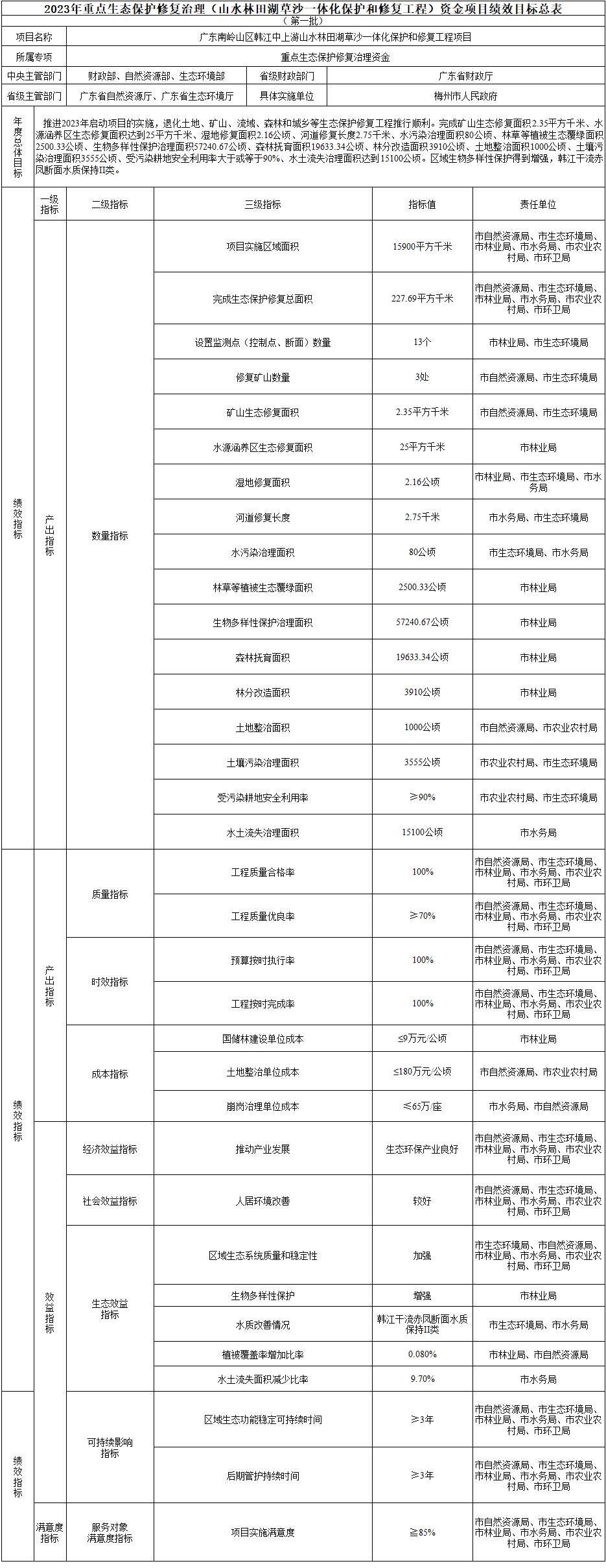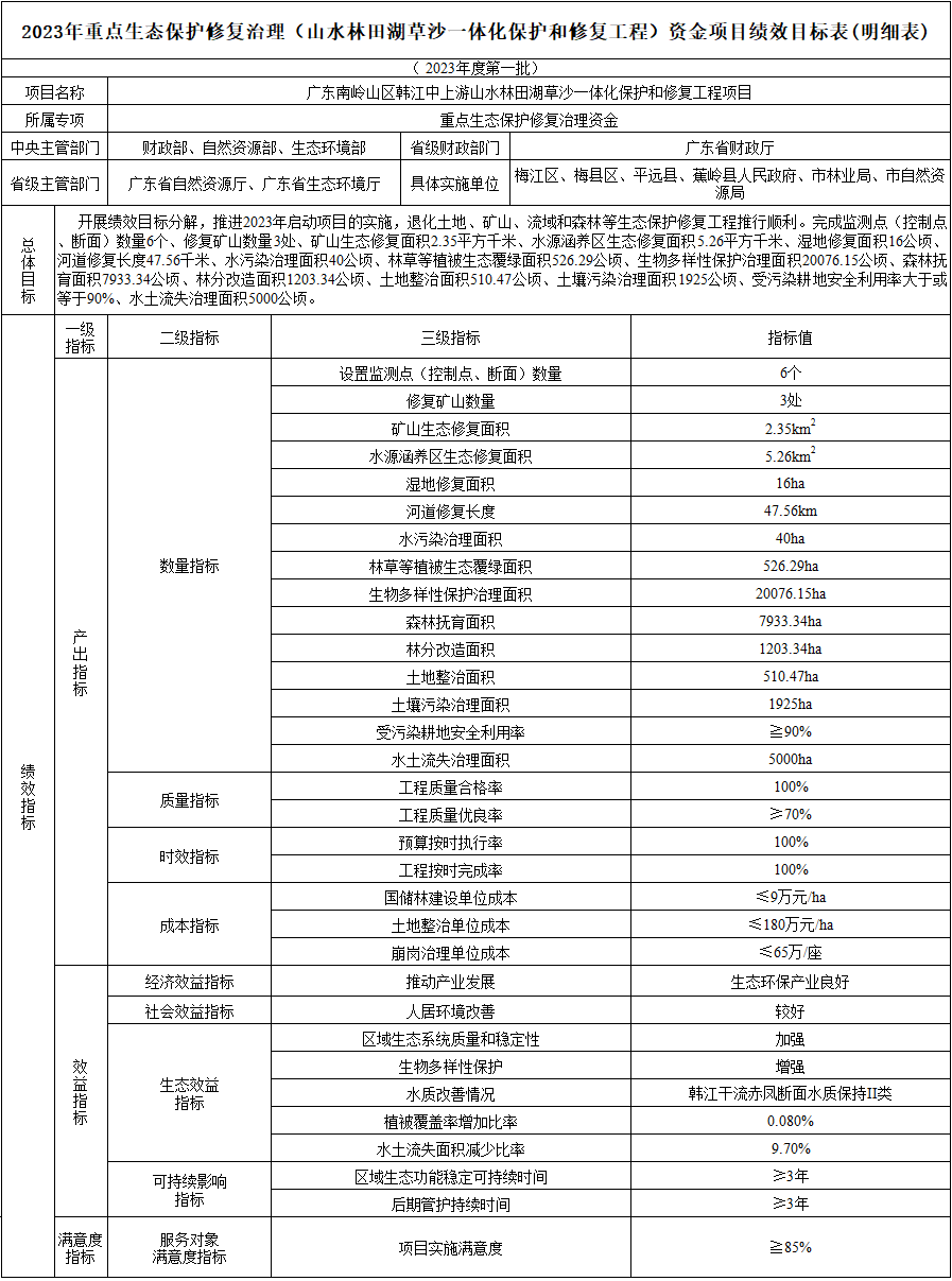 2.2023年重點(diǎn)生態(tài)保護(hù)修復(fù)治理(山水林田湖草沙一體化保護(hù)和修復(fù)工程)資金項(xiàng)目績(jī)效目標(biāo)總表(第一批)