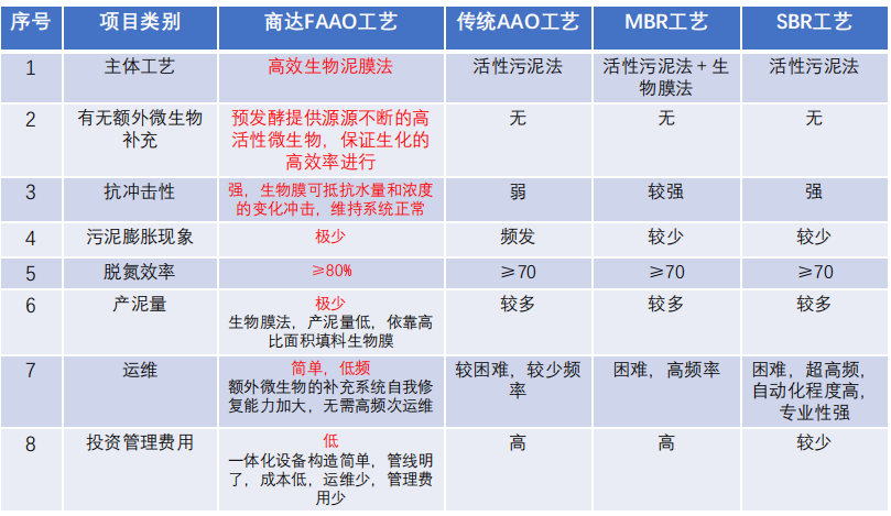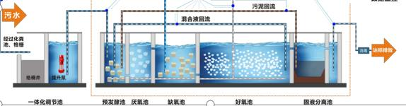 1.0—工程化:工程思維。第一代主要是實(shí)現(xiàn)污水治理功能。工藝 集成度高,但施工周期長(zhǎng),隱蔽工程多, 現(xiàn)場(chǎng)質(zhì)量難以保障,內(nèi)部填料需要定期 更換,加大了運(yùn)維難工作量。 2.0—產(chǎn)品化:產(chǎn)品思維。商達(dá)開展農(nóng)村污水處置終端的產(chǎn)品化在 業(yè)界是比較早的。在2008年開始針對(duì) 土建施工復(fù)雜等問題進(jìn)行了成套化、設(shè) 備化改造。產(chǎn)品多以玻璃鋼為材料,采 用半手工纏繞。 3.0—工業(yè)化:工業(yè)思維。這一代產(chǎn)品進(jìn)行工業(yè)化改造。包括標(biāo) 準(zhǔn)化、規(guī)?;⒌统杀镜取R虼?,第 三代產(chǎn)品生產(chǎn)方式由手工改為模壓工 廠標(biāo)準(zhǔn)化生產(chǎn),質(zhì)量更可靠。 4.0—發(fā)酵強(qiáng)化:效果思維。商達(dá)第四代設(shè)備就是在闡明環(huán)境功能微生物代謝特征基礎(chǔ)上,重新認(rèn)識(shí)微生物發(fā)酵過程,通過精細(xì)調(diào)控,強(qiáng)化微生物在農(nóng)村污水處 理工藝中的效率。 5.0—生態(tài)化:低碳思維。這一代設(shè)備目前還處于研發(fā)示范階段,我們已經(jīng)在浙江臨安指南村等項(xiàng)目上進(jìn)行示范展示。其特點(diǎn)是,站在碳中和與鄉(xiāng)村振興的維 度來(lái)考慮農(nóng)村污水治理,而不單以治污水一個(gè)角度,治理過程中和農(nóng)村生態(tài)、生產(chǎn)、生活相融合,具備資源化利用的功能。 6.0—智慧化 (構(gòu)想):“元宇宙” 思維。這一代設(shè)備擬倚仗強(qiáng)大的終端和后臺(tái)支持,解決的不僅僅只是污水智能控制,還包括農(nóng)村環(huán)境監(jiān)測(cè)、智慧農(nóng)業(yè)、閉環(huán)循環(huán)利用等多個(gè)方面,將技術(shù)體系、運(yùn)營(yíng)體系和產(chǎn)業(yè)系統(tǒng)有機(jī)融合,更好地服務(wù)未來(lái)的美麗鄉(xiāng)村建設(shè)。FBR發(fā)酵槽有兩個(gè)顯著的特征,首先在上一代的基礎(chǔ)上進(jìn)行發(fā)酵強(qiáng)化改進(jìn),第二就是產(chǎn)品標(biāo)準(zhǔn)多樣性,可以根據(jù)客戶的要求,進(jìn)行有針 對(duì)性地設(shè)計(jì),以滿足不同省份出水標(biāo)準(zhǔn)的要求。其中,強(qiáng)化型FRB發(fā)酵槽的出水水質(zhì)可達(dá)到地表準(zhǔn)Ⅳ類水標(biāo)準(zhǔn)。FBR發(fā)酵槽采用FAAO發(fā)酵強(qiáng)化工藝,在提高建設(shè)速度的同時(shí)可以保證出水穩(wěn)定達(dá)標(biāo)。其中F表示:發(fā) 酵 Fermentation;B表示:生物膜 Biofilm R表示:反應(yīng)器 Reactor,F(xiàn)AAO發(fā)酵強(qiáng)化工藝是一種基于厭氧/ 缺氧/好氧(AAO)生化組合,利用發(fā)酵技術(shù),強(qiáng)化脫氮除磷功能的移動(dòng)床生物膜工藝。
