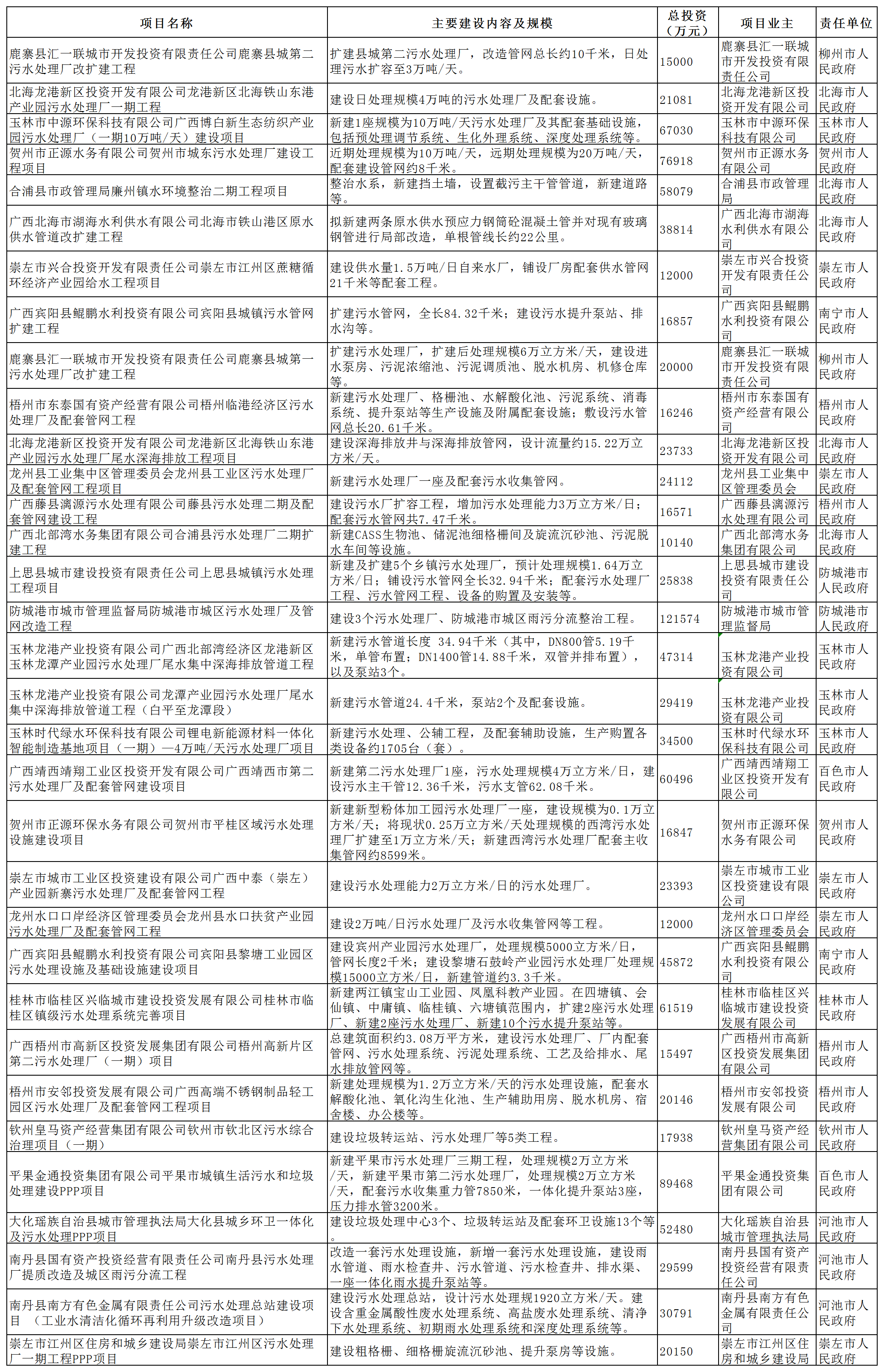 2月14日,廣西壯族自治區(qū)重大項(xiàng)目建設(shè)推進(jìn)領(lǐng)導(dǎo)小組辦公室印發(fā)《2023年自治區(qū)層面統(tǒng)籌推進(jìn)重大項(xiàng)目清單》。2023年重大項(xiàng)目包括新開工、續(xù)建、竣工投產(chǎn)和預(yù)備四類,共2528項(xiàng),總投資46486.42億元,年度計(jì)劃投資4261.67億元。其中包括水環(huán)境綜合整治、城鎮(zhèn)污水管網(wǎng)擴(kuò)建工程、污水處理廠項(xiàng)目、供水等30余個(gè)項(xiàng)目。2023年自治區(qū)層面統(tǒng)籌推進(jìn)重大項(xiàng)目實(shí)施方案2023年是全面貫徹落實(shí)黨的二十大精神開局之年,也是貫徹落實(shí)自治區(qū)第十二次黨代會精神的關(guān)鍵一年,做好自治區(qū)層面統(tǒng)籌推進(jìn)重大項(xiàng)目(以下簡稱重大項(xiàng)目)建設(shè)工作意義重大。為充分發(fā)揮重大項(xiàng)目在調(diào)結(jié)構(gòu)、穩(wěn)增長、促轉(zhuǎn)型等方面的引領(lǐng)帶動作用,努力擴(kuò)大有效投資,促進(jìn)全區(qū)經(jīng)濟(jì)平穩(wěn)健康發(fā)展,特制定本方案。一、主要目標(biāo)以習(xí)近平新時(shí)代中國特色社會主義思想為指導(dǎo),深入學(xué)習(xí)貫徹黨的二十大精神和中央經(jīng)濟(jì)工作會議精神,認(rèn)真學(xué)習(xí)貫徹習(xí)近平總書記對廣西“五個(gè)更大”重要要求,深入貫徹落實(shí)習(xí)近平總書記視察廣西“4·27”重要講話和對廣西工作系列重要指示精神,堅(jiān)持穩(wěn)中求進(jìn)工作總基調(diào),立足新發(fā)展階段,完整、準(zhǔn)確、全面貫徹新發(fā)展理念,服務(wù)和融入新發(fā)展格局,以推動高質(zhì)量發(fā)展為主題,堅(jiān)持政策為大、項(xiàng)目為王、環(huán)境為本、創(chuàng)新為要,始終保持重大項(xiàng)目“開工一批、在建一批、投產(chǎn)一批、儲備一批”的良好態(tài)勢,促進(jìn)全區(qū)經(jīng)濟(jì)社會持續(xù)健康發(fā)展。深入實(shí)施《廣西重大項(xiàng)目建設(shè)三年行動計(jì)劃(2021—2023年)》,繼續(xù)推進(jìn)一批重大項(xiàng)目加快建設(shè),力爭全年完成投資5000億元以上,新開工項(xiàng)目360個(gè)以上,努力實(shí)現(xiàn)質(zhì)的有效提升和量的合理增長,為全面建設(shè)新時(shí)代壯美廣西開好局起好步。二、工作任務(wù)2023年重大項(xiàng)目包括新開工、續(xù)建、竣工投產(chǎn)和預(yù)備四類,共2528項(xiàng),總投資46486.42億元,年度計(jì)劃投資4261.67億元。其中,新開工項(xiàng)目303項(xiàng),總投資4750.92億元,年度計(jì)劃投資617.97億元;續(xù)建項(xiàng)目1285項(xiàng),總投資24981.42億元,年度計(jì)劃投資3019.03億元;竣工投產(chǎn)259項(xiàng),總投資4713.88億元,年度計(jì)劃投資624.67億元;預(yù)備項(xiàng)目681項(xiàng),總投資12040.2億元。(一)新開工任務(wù)(共303項(xiàng))。區(qū)直中直和跨區(qū)域重大項(xiàng)目25項(xiàng),南寧市24項(xiàng),柳州市29項(xiàng),桂林市27項(xiàng),梧州市29項(xiàng),北海市14項(xiàng),防城港市15項(xiàng),欽州市28項(xiàng),貴港市19項(xiàng),玉林市15項(xiàng),百色市23項(xiàng),賀州市12項(xiàng),河池市16項(xiàng),來賓市14項(xiàng),崇左市13項(xiàng)。(二)續(xù)建任務(wù)(共1285項(xiàng))。區(qū)直中直和跨區(qū)域重大項(xiàng)目84項(xiàng),南寧市137項(xiàng),柳州市77項(xiàng),桂林市89項(xiàng),梧州市93項(xiàng),北海市74項(xiàng),防城港市56項(xiàng),欽州市86項(xiàng),貴港市95項(xiàng),玉林市98項(xiàng),百色市86項(xiàng),賀州市65項(xiàng),河池市56項(xiàng),來賓市61項(xiàng),崇左市128項(xiàng)。(三)竣工投產(chǎn)任務(wù)(共259項(xiàng))。區(qū)直中直和跨區(qū)域重大項(xiàng)目48項(xiàng),南寧市20項(xiàng),柳州市34項(xiàng),桂林市23項(xiàng),梧州市14項(xiàng),北海市18項(xiàng),防城港市7項(xiàng),欽州市15項(xiàng),貴港市8項(xiàng),玉林市7項(xiàng),百色市12項(xiàng),賀州市19項(xiàng),河池市8項(xiàng),來賓市10項(xiàng),崇左市16項(xiàng)。(四)預(yù)備任務(wù)(共681項(xiàng))。區(qū)直中直和跨區(qū)域重大項(xiàng)目20項(xiàng),南寧市50項(xiàng),柳州市32項(xiàng),桂林市49項(xiàng),梧州市48項(xiàng),北海市32項(xiàng),防城港市32項(xiàng),欽州市87項(xiàng),貴港市88項(xiàng),玉林市77項(xiàng),百色市50項(xiàng),賀州市7項(xiàng),河池市59項(xiàng),來賓市9項(xiàng),崇左市41項(xiàng)。(五)投資任務(wù)。年度計(jì)劃投資4261.67億元,其中,區(qū)直中直和跨區(qū)域重大項(xiàng)目1938.85億元,南寧市217.99億元,柳州市206.00億元,桂林市246.92億元,梧州市191.03億元,北海市205.96億元,防城港市100.87億元,欽州市138.08億元,貴港市152.27億元,玉林市236.67億元,百色市156.83億元,賀州市138.95億元,河池市86.45億元,來賓市65.80億元,崇左市179.01億元。2023年重大項(xiàng)目清單由自治區(qū)重大項(xiàng)目建設(shè)推進(jìn)領(lǐng)導(dǎo)小組辦公室(以下簡稱自治區(qū)重大辦)印發(fā)實(shí)施并滾動管理。三、工作措施(一)加強(qiáng)組織領(lǐng)導(dǎo)。全區(qū)各級各部門要進(jìn)一步增強(qiáng)加快推進(jìn)重大項(xiàng)目建設(shè)的責(zé)任感和緊迫感,以時(shí)不我待、只爭朝夕的精神齊心協(xié)力推進(jìn)重大項(xiàng)目建設(shè)邁上新臺階。區(qū)直中直和跨區(qū)域項(xiàng)目總體推進(jìn)工作由區(qū)直中直主管部門負(f