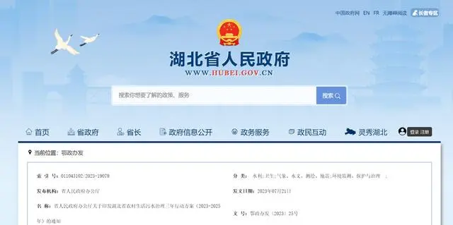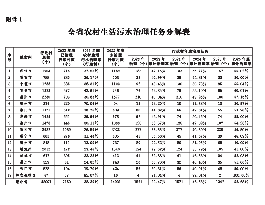 湖北省人民政府辦公廳關(guān)于印發(fā)湖北省農(nóng)村生活污水治理三年行動方案(2023-2025年)的通知