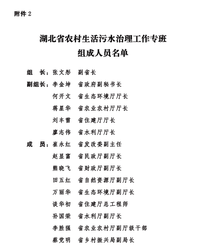 2、湖北省農(nóng)村生活污水治理工作專班組成人員名單