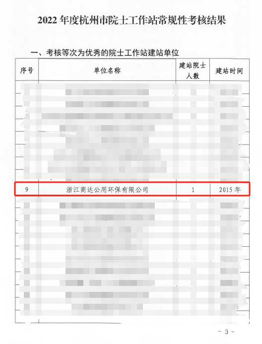 近日,2022年杭州市院士工作站常規(guī)性考核工作圓滿(mǎn)結(jié)束。經(jīng)過(guò)材料審查、工作匯報(bào)、專(zhuān)家評(píng)審等環(huán)節(jié),浙江商達(dá)公用環(huán)保有限公司院士工作站獲評(píng)2022年度杭州市優(yōu)秀院士專(zhuān)家工作站。