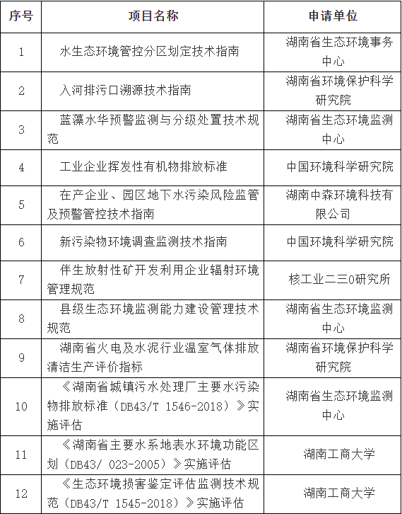 根據(jù)《湖南省生態(tài)環(huán)境廳關于公開征集2024年擬推薦地方生態(tài)環(huán)境標準項目承擔單位的通知》要求,我廳組織開展了地方生態(tài)環(huán)境標準項目評審工作。經(jīng)項目單位申請、專家評審、會議審議等程序,確定2024年擬推薦的地方生態(tài)環(huán)境標準項目?,F(xiàn)予以公示,公示期為2023年11月14日-21日,在此期間,接受有關申訴、質疑及相關各方監(jiān)督。