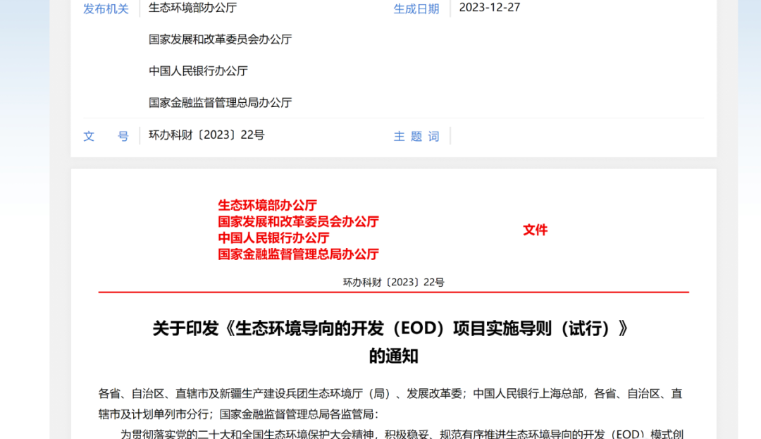 關(guān)于印發(fā)《生態(tài)環(huán)境導(dǎo)向的開發(fā)(EOD)項目實施導(dǎo)則(試行)》的通知