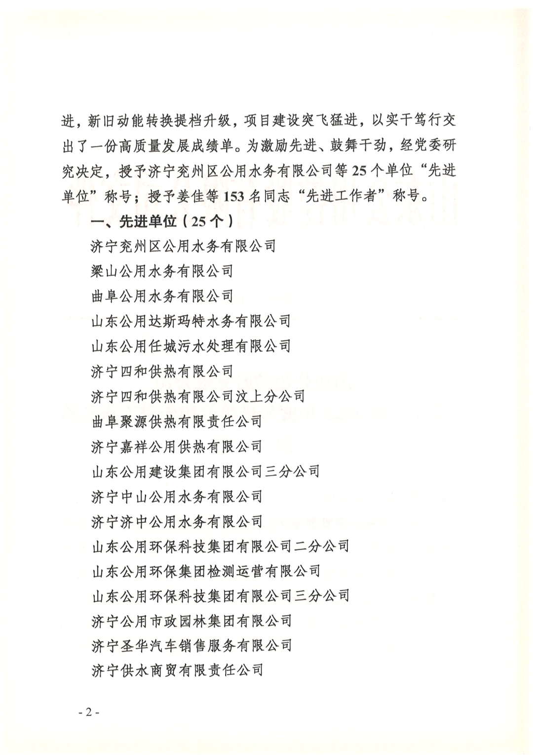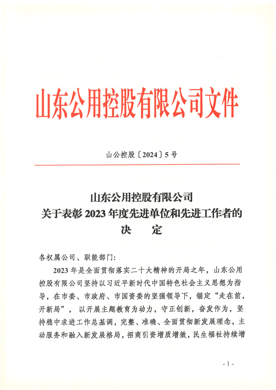 1月19日,山東公用控股有限公司印發(fā)了《山東公用控股有限公司關(guān)于表彰2023年度先進單位和先進工作者的決定》,商達公用榮獲2023年度先進單位。