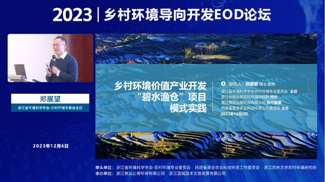 鄭展望教授在“鄉(xiāng)村環(huán)境導(dǎo)向開發(fā)EOD論壇”分享商達(dá)公用“碧水漁倉(cāng)”模式