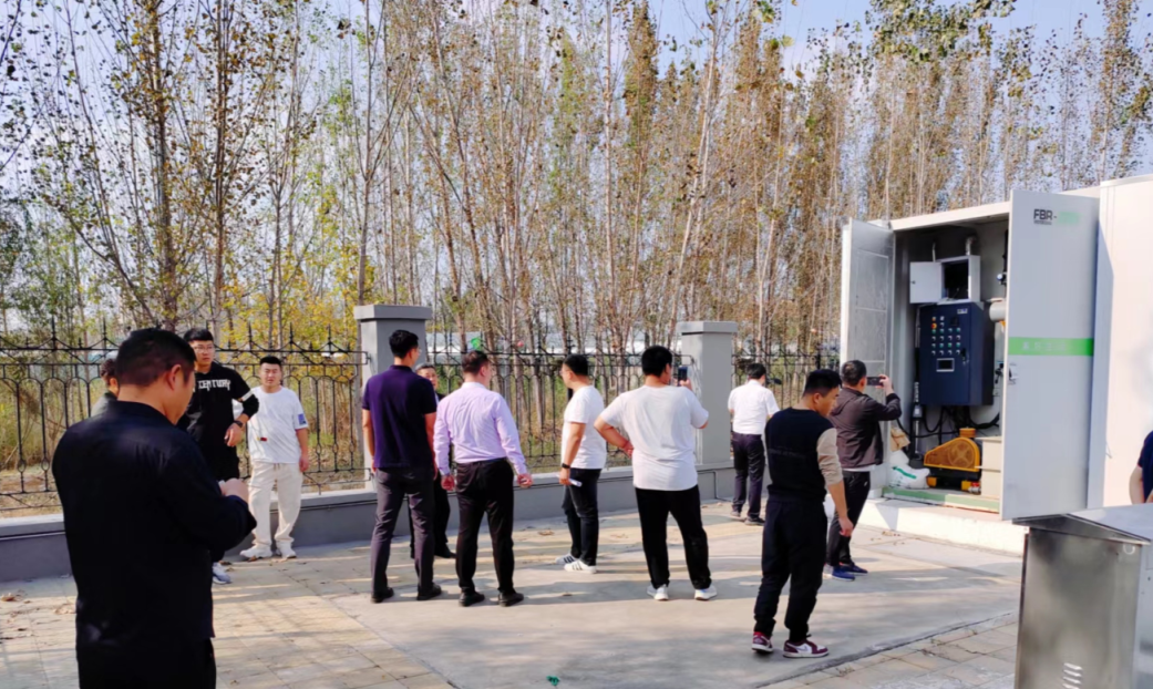 運(yùn)維人員向濟(jì)寧城鄉(xiāng)水務(wù)局領(lǐng)導(dǎo)介紹商達(dá)5.0發(fā)酵箱產(chǎn)品