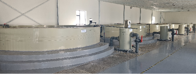 在江蘇宜興建立商達(dá)公用“碧水漁倉(cāng)”示范基地,基地采用工廠化循環(huán)水養(yǎng)殖模式,具有標(biāo)準(zhǔn)化、高效化、綠色化、智慧化等特點(diǎn)?;匾还灿?個(gè)PP陸基魚池,養(yǎng)殖水方300立方,預(yù)計(jì)年產(chǎn)量18噸。系統(tǒng)配置有自動(dòng)水循環(huán)系統(tǒng)、增氧系統(tǒng)、純氧系統(tǒng)、排污系統(tǒng),水溫常年保持在25℃左右。通過(guò)環(huán)境參數(shù)采集、無(wú)線組網(wǎng)、智能控制、自動(dòng)預(yù)警等,實(shí)現(xiàn)集約、高產(chǎn)、生態(tài)、安全養(yǎng)殖。