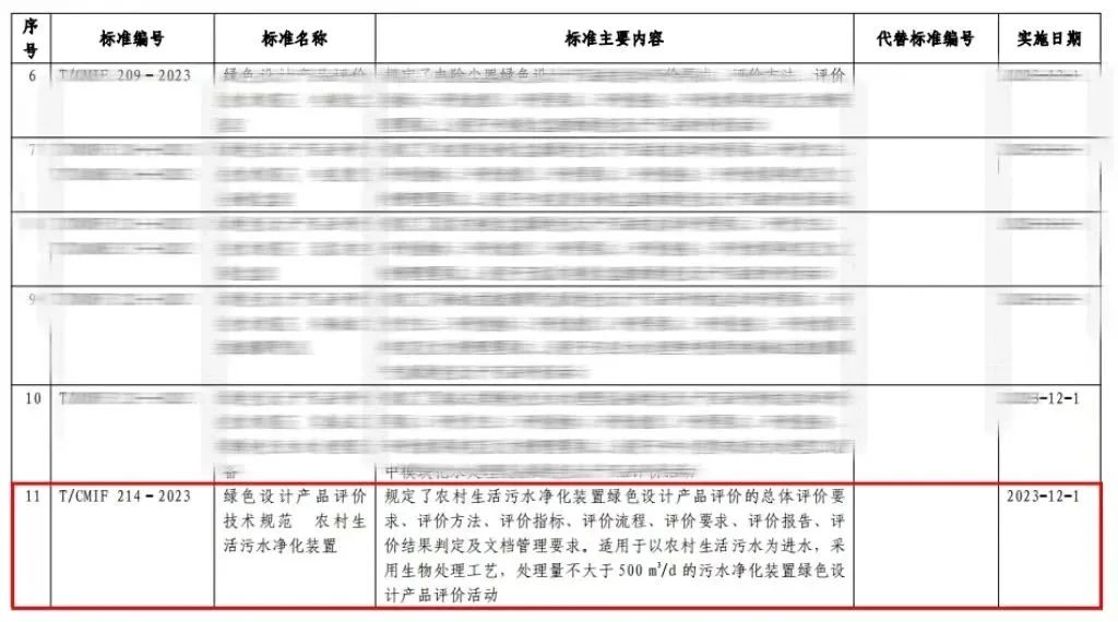 10月10日,中國(guó)機(jī)械工業(yè)聯(lián)合會(huì)發(fā)布2023年第4號(hào)公告,批準(zhǔn)17項(xiàng)中國(guó)機(jī)械工業(yè)聯(lián)合會(huì)團(tuán)體標(biāo)準(zhǔn)。由商達(dá)公用起草主編的T/CMIF 214-2023《綠色設(shè)計(jì)產(chǎn)品評(píng)價(jià)技術(shù)規(guī)范 農(nóng)村生活污水凈化裝置》名列榜單。