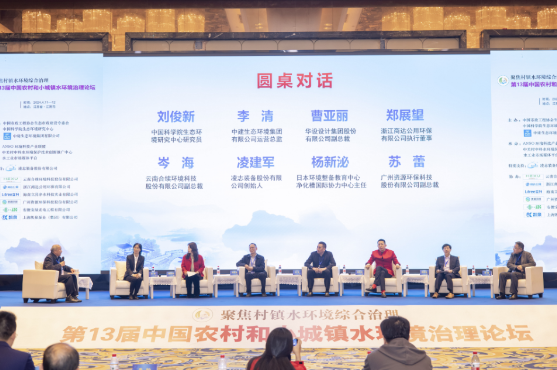當天下午,鄭展望教授作為嘉賓參加了主題為“2024村鎮(zhèn)污水處理行業(yè)如何共啟新篇”的圓桌對話,與各企業(yè)代表、專家針對村鎮(zhèn)污水行業(yè)目前面臨的難題與解決辦法、未來村鎮(zhèn)污水處理行業(yè)的發(fā)展方向等話題進行深入交流探討并與臺下觀眾互動。