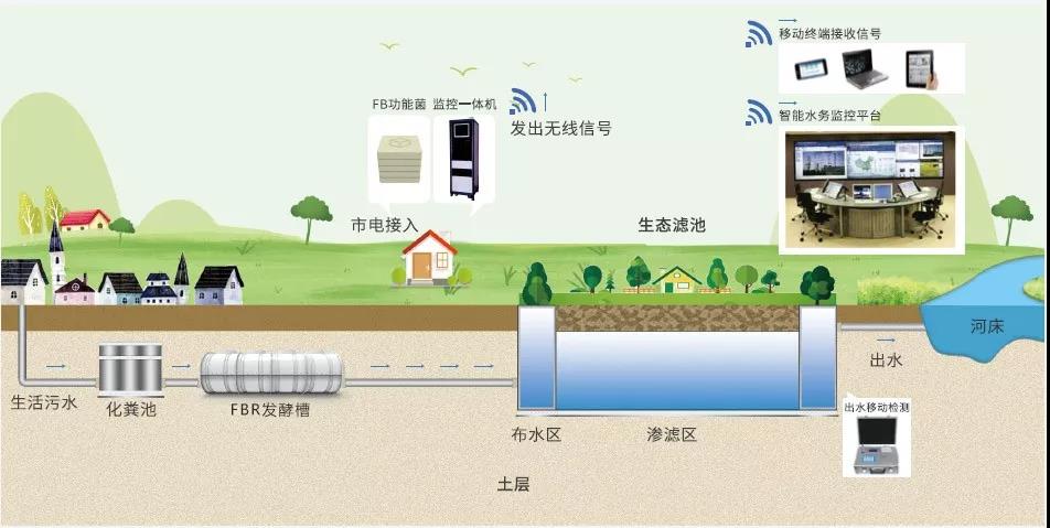 站點采用第四代污水一體化處理設(shè)備-FBR發(fā)酵槽,通過發(fā)酵強化處理,出水穩(wěn)定達(dá)到《城鎮(zhèn)污水處理廠污染物排放標(biāo)準(zhǔn)》一級A標(biāo)準(zhǔn),后期通過物聯(lián)網(wǎng)技術(shù)進(jìn)行遠(yuǎn)程移動管理。