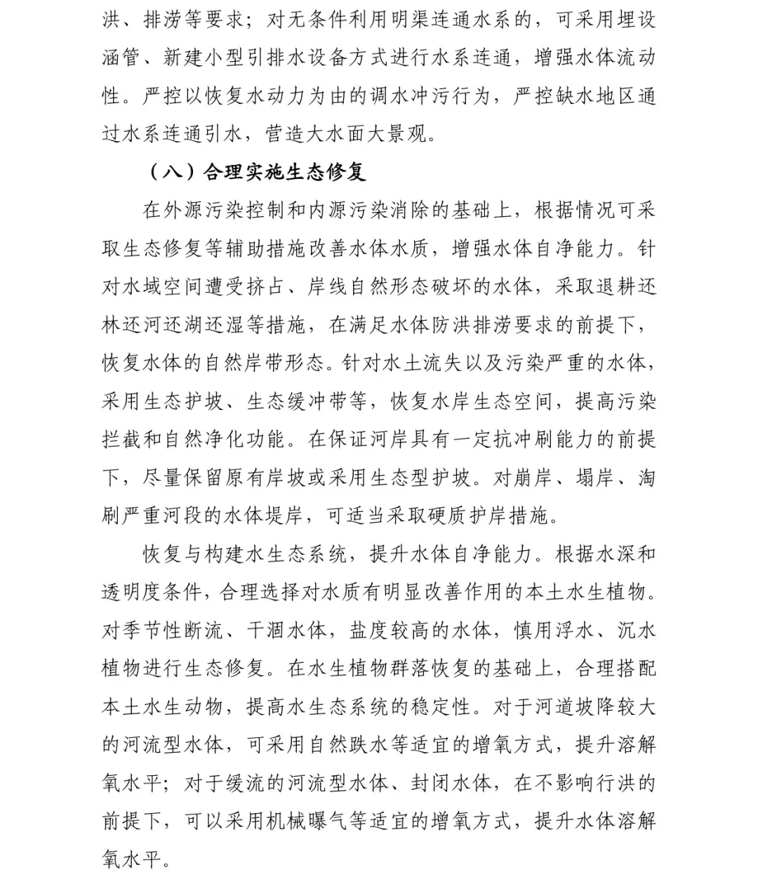 近日,山西印發(fā)《扎實(shí)開展農(nóng)村黑臭水體治理辦實(shí)辦細(xì)辦牢民生實(shí)事工作方案》,提出有效治理生活污水、清理整治村莊生活垃圾、依法防治畜禽養(yǎng)殖污染、綜合治理水產(chǎn)養(yǎng)殖及種植業(yè)污染、嚴(yán)格監(jiān)管農(nóng)村工業(yè)企業(yè)排污、規(guī)范處置淤積底泥、科學(xué)開展水系連通、合理實(shí)施生態(tài)修復(fù)等治理措施,最終達(dá)到水體不黑不臭、完成水體治理措施、建有長效管護(hù)機(jī)制、群眾滿意、公示無異議等標(biāo)準(zhǔn)。